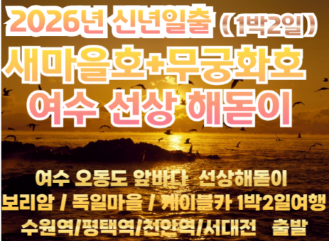 ◎2026 해돋이행사인 본 상품은 열차좌석과 연계버스료,선박,식당 등에 대한 제비용을