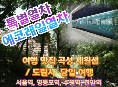 [에코레일] 07:00 서울역 출발 ~ 11:00 곡성역 도착 영등포역, 수원역, 천안역, 서대전역, 남원역 경유 *열차 시간은 변경될 수 있습니다. [11:10~11:20] 연계버스 탑승 및 이동